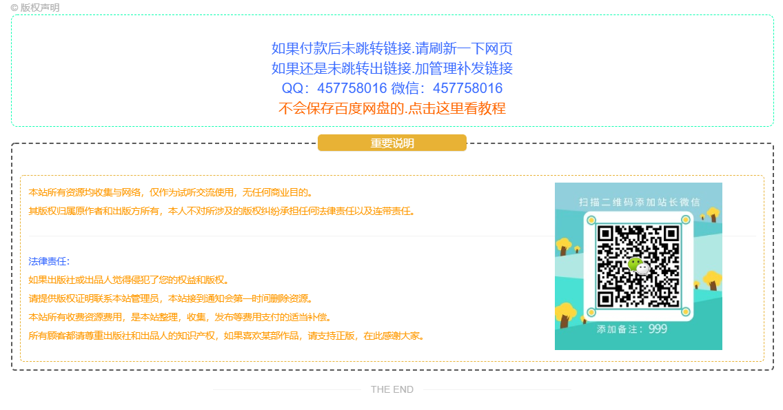 如果付款后未跳轉鏈接.請刷新一下網頁 如果還是未跳轉出鏈接.加管理補發鏈接 QQ:2559748269 微信:457758016 不會保存百度網盤的.看教程 打開一個資源鏈接,然后輸入提取碼。 如果是手機保存,一定要把鏈接復制到瀏覽器,然后登陸自己的百度網盤賬號在保存。 直接在網盤APP里是不可以分文件夾保存的,百度會員可以忽略。 使用說明:
